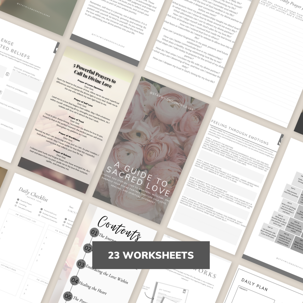Inviting in Your Divine Partner: A Guide to Sacred Love" is a transformational journey that offers an immersive experience into the realms of mindful prayer, self-love, emotional healing, and manifestation with the profound aim of calling in your divine partner.